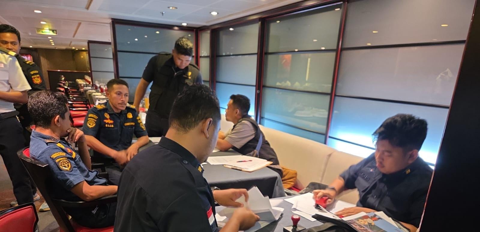 Petugas Imigrasi Labuan Bajo melakukan pemeriksaan dokumen perjalanan seluruh penumpang dan awak kapal secara menyeluruh. Proses pemeriksaan berlangsung intensif, cepat, dan profesional sesuai ketentuan peraturan perundang-undangan yang berlaku.